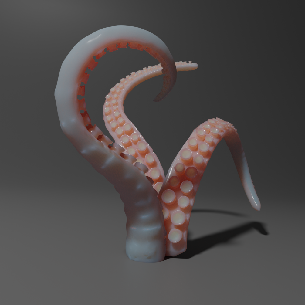 On the Tentacle Material, you may want to change the base colour brightness on the Principled BSDF nodes depending on your lighting setup.